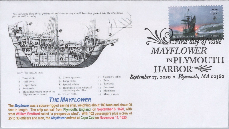 | | Tris Fall | | 422 | 5524 | 9/17/2020 | Mayflower in Plymouth Harbor; FM Cachets (Fall) | $12.00 |