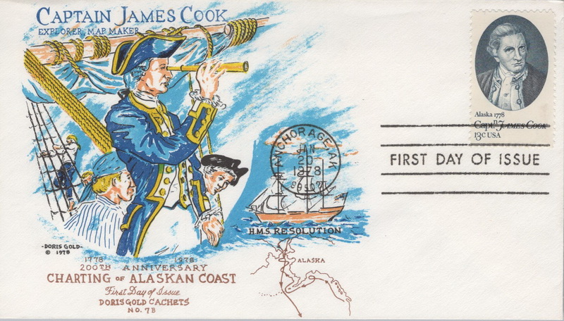 | | Doris Gold Cachets | | 452 | 1732 | 1/20/1978 | Captain James Cook, Alaska 1778; Doris Gold Cachets | $10.00 |