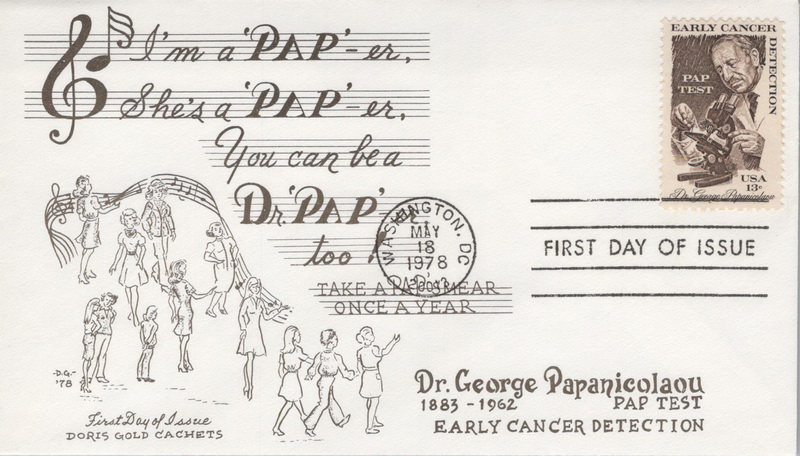 | | Doris Gold Cachets | | 459 | 1754 | 5/18/1978 | Dr. George Papanicolaou, Pap Test; Doris Gold Cachets; Design 2 | $10.00 |