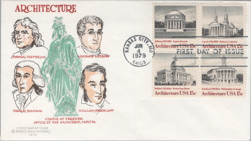 | | Doris Gold Cachets | | 467 | 1782a | 6/4/1979 | American Architecture, Block of 4; Doris Gold Cachets | $10.00 |