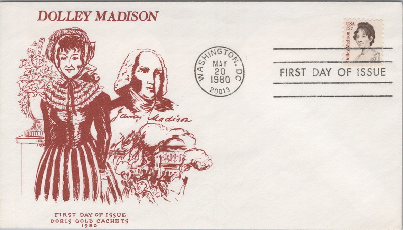 | | Doris Gold Cachets | | 472 | 1822 | 5/20/1980 | Dolley Madison; Doris Gold Cachets | $8.00 |