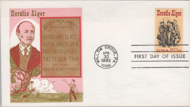| | Doris Gold Cachets | | 494 | 2010 | 4/30/1982 | Horatio Alger; Doris Gold Cachets | $12.00 |