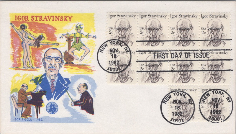 | | Doris Gold Cachets | | 503 | 1845 | 11/18/1982 | Igor Stravinsky; Doris Gold Cachets | $8.00 |