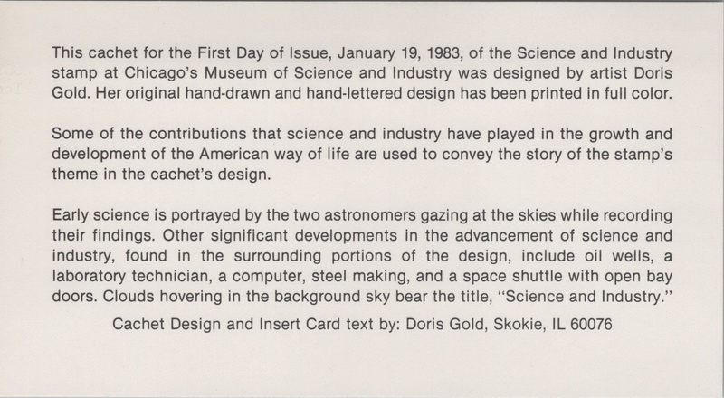 | | Doris Gold Cachets | | 505 | 2031 | 1/19/1983 | Science & Industry; Doris Gold Cachets; Design 1 | $8.00 |
