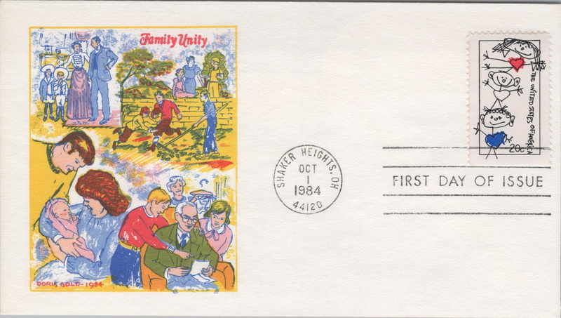 | | Doris Gold Cachets | | 536 | 2104 | 10/1/1984 | Family Unity; Doris Gold Cachets | $8.00 |