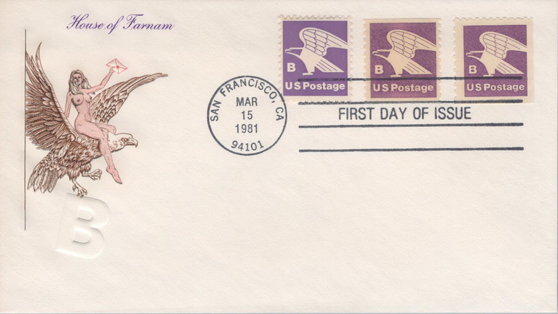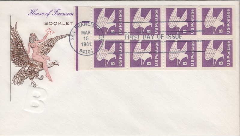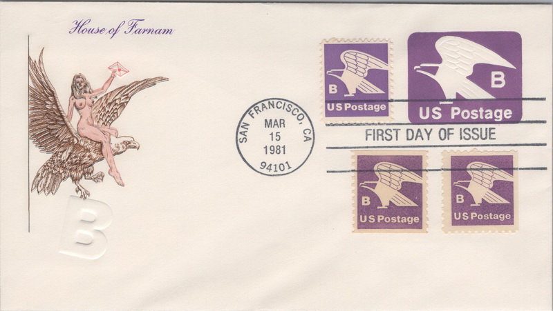| | House of Farnam | | 556 | 1818 | 3/15/1981 | B and Eagle, sheet; Farnam; 1981 "B" postal issues with Nude Woman | $45.00 |