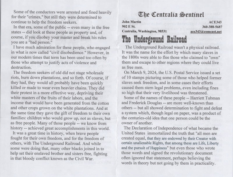 | | John Martin, ACE 343 | | 585 | 5843a | 3/9/2024 | Underground Railroad, Set of 10; Martin, John | $60.00 |