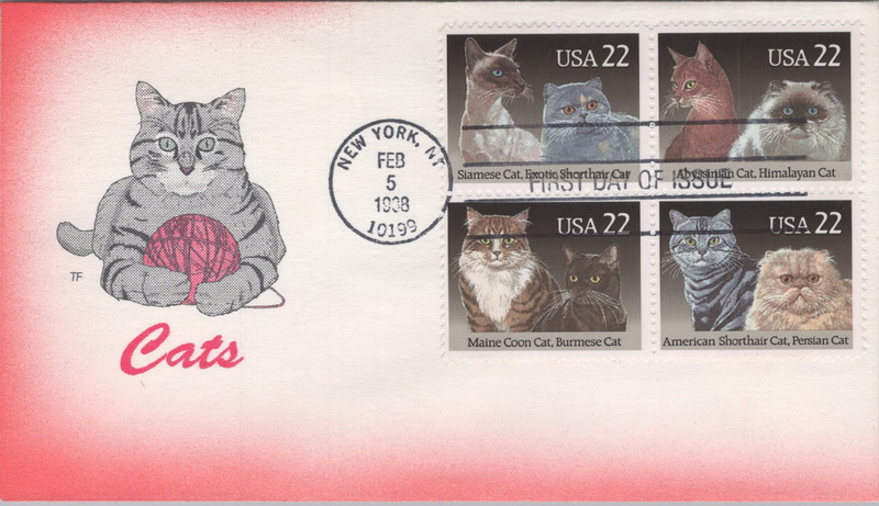 | | TF Cachets | | 627 | 2375a | 2/5/1988 | Cats, Block of 4; TF Cachets; HPD; 50 made | $15.00 |