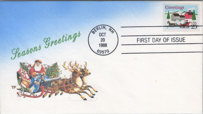 | | TF Cachets | | 629 | 2400 | 10/20/1988 | Christmas 1988, Christmas Village; TF Cachets; HPD; 110 made | $15.00 |