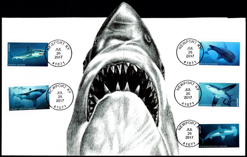 | | Therome Cachets | | 663 | 5227a | 7/26/2017 | Sharks, Strip of 5; Therome Cachet; Pop-Out cachet with all five stamps | $20.00 |