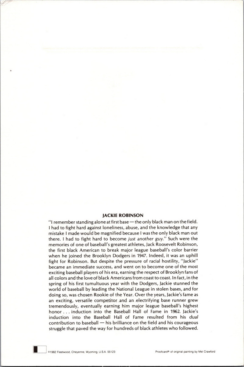 | | Baseball | | 705 | 2016 | 8/2/1982 | Black Heritage - Jackie Robinson; Fleetwood; Proof Card | $12.00 |