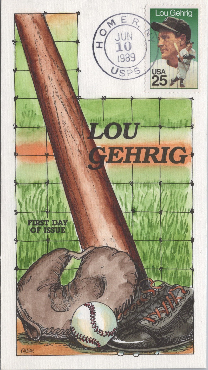 | | Baseball | | 708 | 2417 | 6/10/1989 | Lou Gehrig; Collins; HPD; UO Homer NY; USPS CDS | $20.00 |