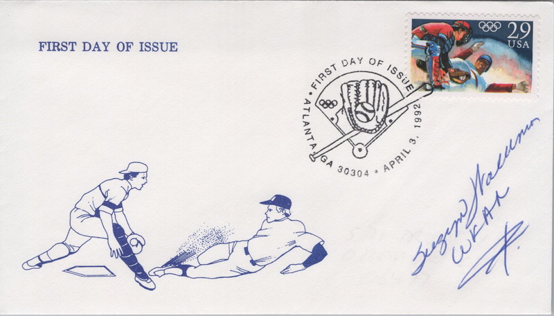 | | Baseball | | 714 | 2619 | 4/3/1992 | Olympic Baseball; JC Cachet; Signed by Susyn Wardman, Sports Announcer/Commentator | $20.00 |