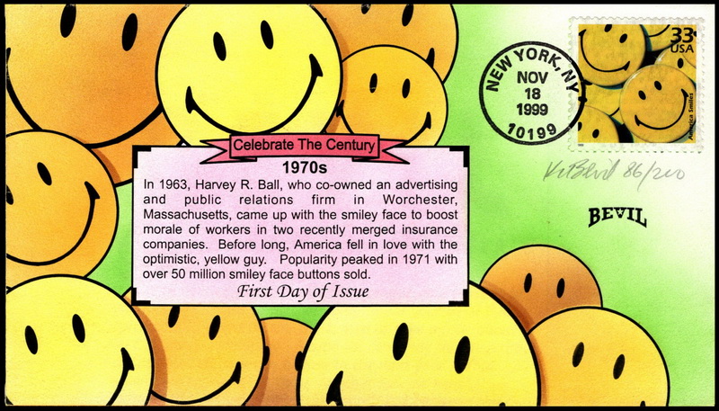 | | Celebrate The Century Series - 1970s | | 784 | 3189m | 11/18/1999 | CTC - 1970's - Smiley Face; Bevil Cachets; HPD, #86/200 | $20.00 |