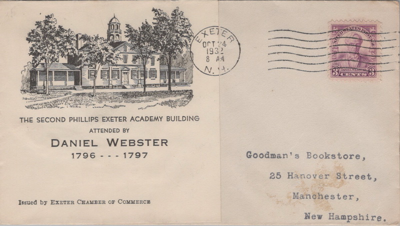 | | First Cachets | | 798 | 0725 | 10/24/1932 | Webster Sesquicentennial; Exeter Chamber Of Commerce; P24; pas; black; First Cachet; Exeter NH; MC6 8AM TA | $25.00 |