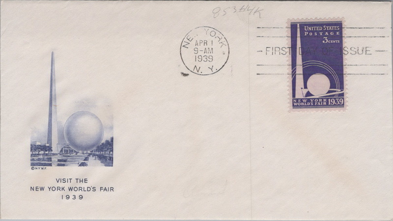 | | First Cachets | | 804 | 0853 | 4/1/1939 | NY World's Fair; Artcraft; First Cachet; SEV-4K; dark blue, w/o dark line at bottom, w/o FDOI, Libby Bond watermark, and w/o trademark | $300.00 |