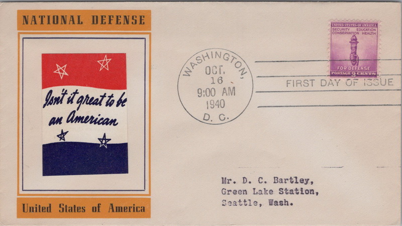 | | First Cachets | | 810 | 0901 | 10/16/1940 | National Defense, Torch; Lange, F. W.; MNL; HC TA | $75.00 |