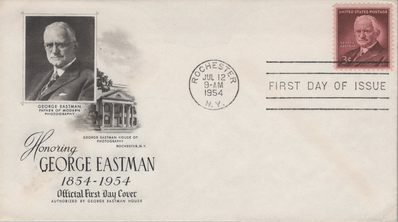 | | First Cachets | | 816 | 1062 | 7/12/1954 | George Eastman, Kodak; George Eastman House; with enclosure | $15.00 |