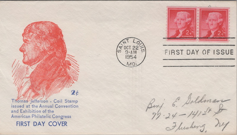 | | First Cachets | | 817 | 1055 | 10/22/1954 | Thomas Jefferson, Coil; Thomas Jefferson Society of the United States of America; FB; blue/red; PR MC PA | $15.00 |