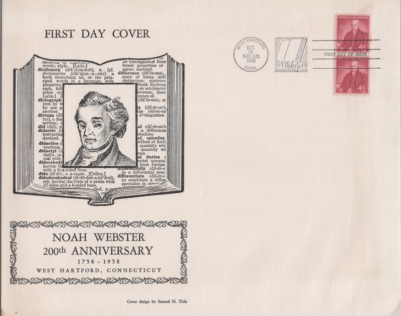 | | First Cachets | | 823 | 1121 | 10/16/1958 | 200th Anniversary Noah Webster; Title, Samuel H.; MNL; First Cachet listed in First Cachets as 1121-E, but this item is NOT listed! | $100.00 |