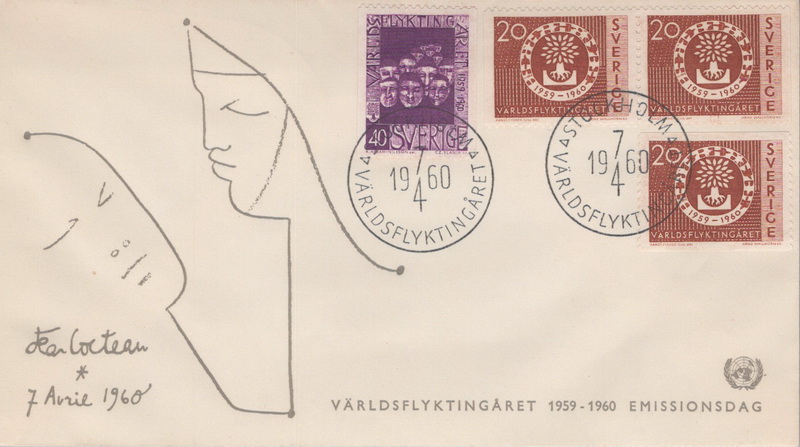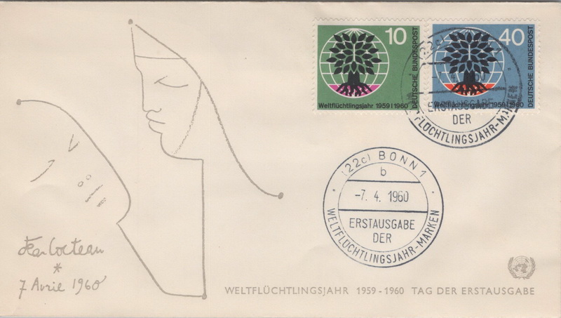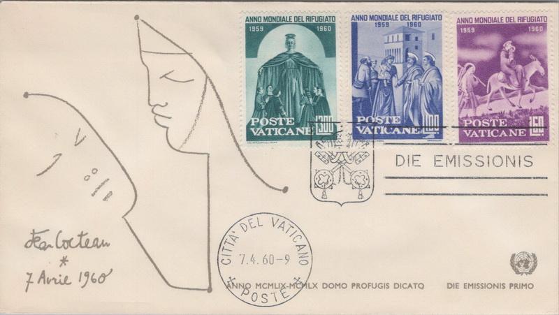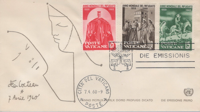 | | First Cachets | | 825 | 1149 | 4/7/1960 | World Refugee Year; Cocteau, Jean; M7; First Cachet; Plus 24 foreign FDCs for World Refugee Year | $100.00 |