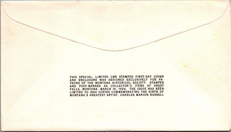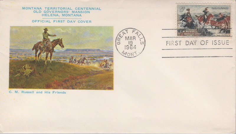 | | First Cachets | | 832 | 1243 | 3/19/1964 | Charles Russell, Artist; Montana Territorial Centennial Commission; with enclosure | $20.00 |