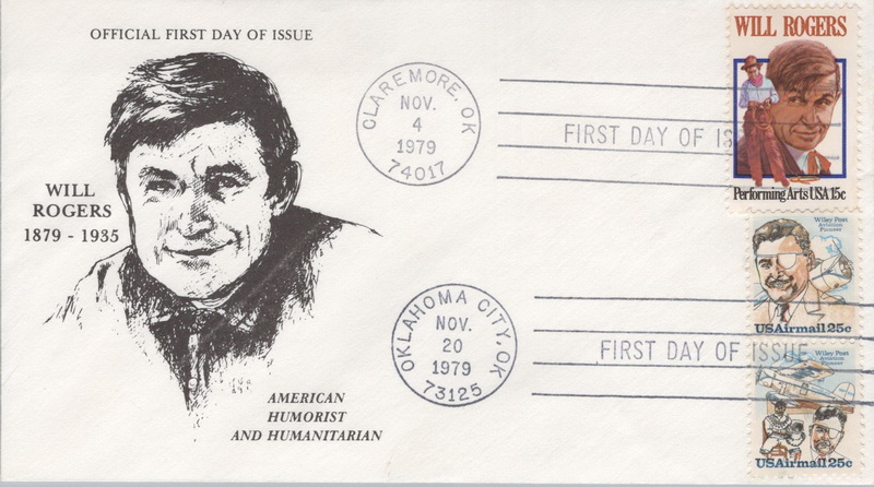 | | First Cachets | | 849 | 1801 | 11/4/1979 | Will Rogers, Performing Arts; LLB; FJ; Dual Rogers FDOI and C95-96 Post FDOI | $15.00 |