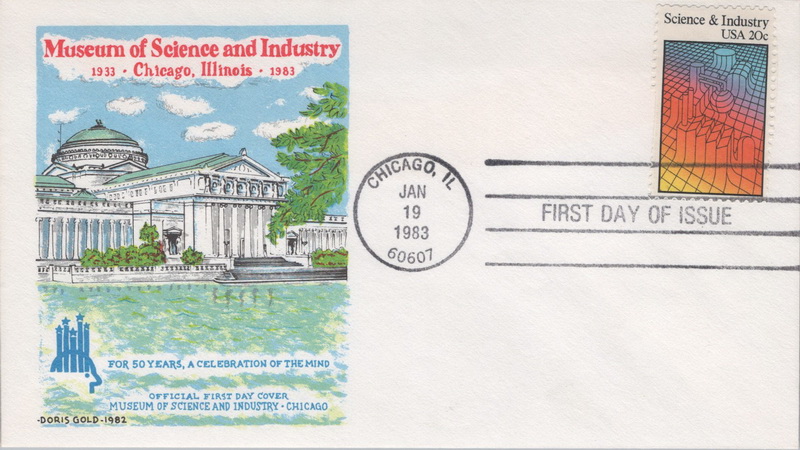 | | First Cachets | | 856 | 2031 | 1/19/1983 | Science & Industry; Museum of Science & Industry - Chicago; Design 1; Art by Doris Gold; First Cachet | $15.00 |