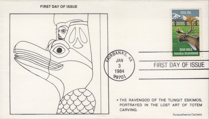 | | First Cachets | | 857 | 2066 | 1/3/1984 | Alaska Statehood; Susquehanna Cachets; First Cachet; black & white | $15.00 |