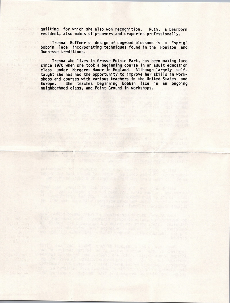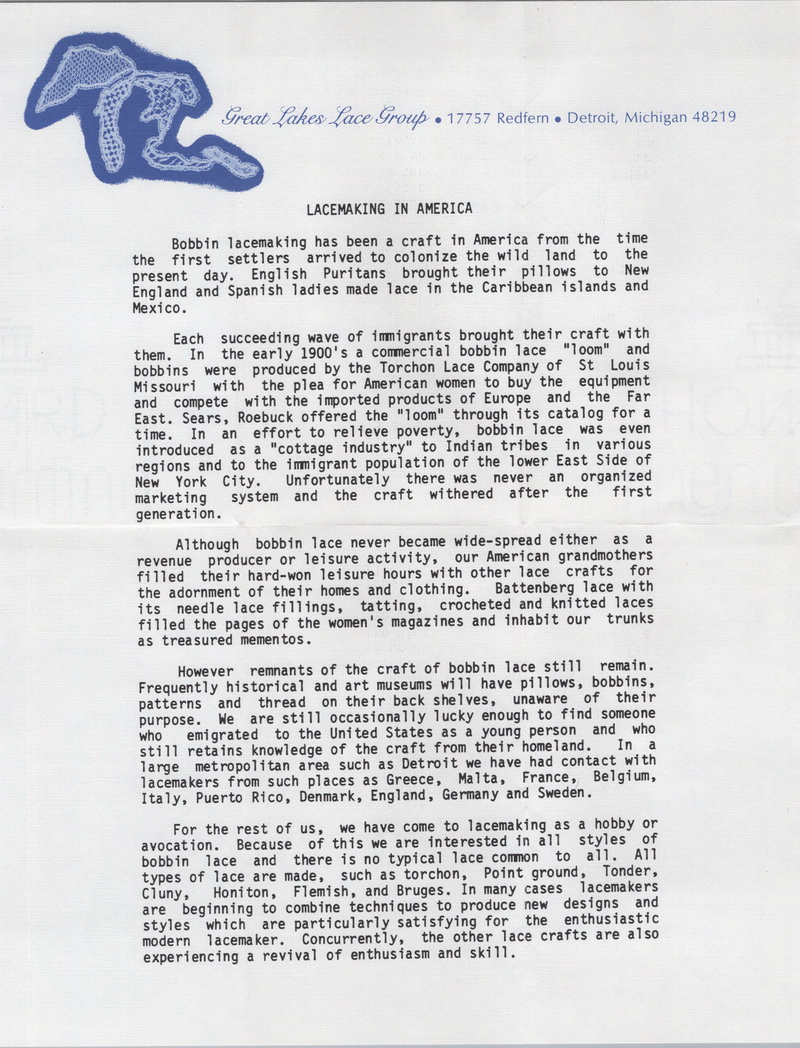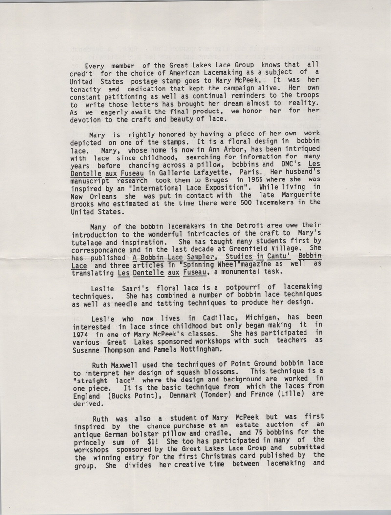 | | First Cachets | | 862 | 2354a | 8/14/1987 | Lacemaking, Block of 4; Great Lakes Lace Group | $12.00 |