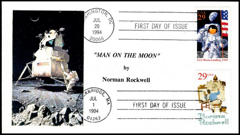 | | First Cachets | | 865 | 2841a | 7/20/1994 | First Moon Landing, Single; Thrifty Photo Cachet; FT; black; pasted-on photo; Dual FDOI #2839 Norman Rockwell; First Cachet | $15.00 |
