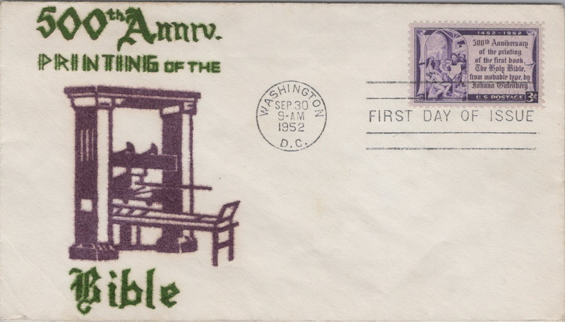 | | Flocked Cachets | | 866 | 1014 | 9/30/1952 | Gutenberg Bible; Velvatone; M37 | $15.00 |