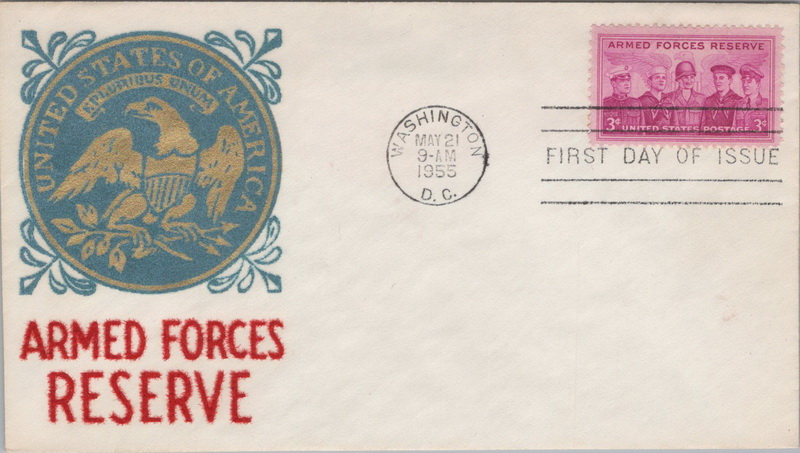 | | Flocked Cachets | | 872 | 1067 | 5/21/1955 | Armed Forces Reserve; Velvatone; MNL | $15.00 |