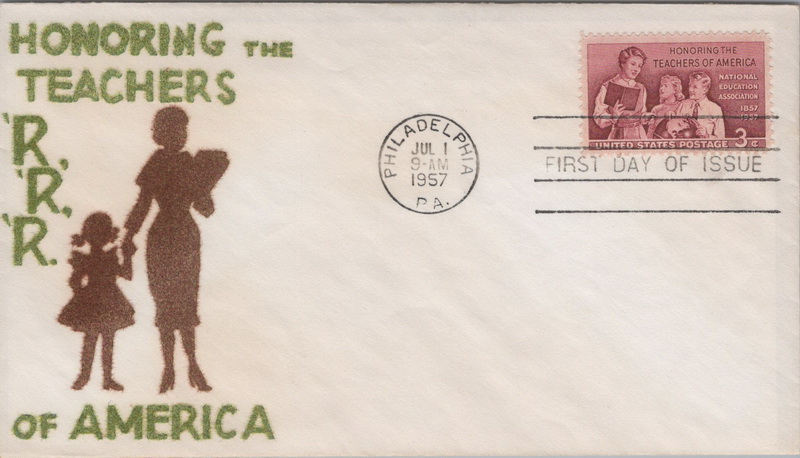| | Flocked Cachets | | 890 | 1093 | 7/1/1957 | School Teachers; Velvatone; M16; green/brown | $15.00 |