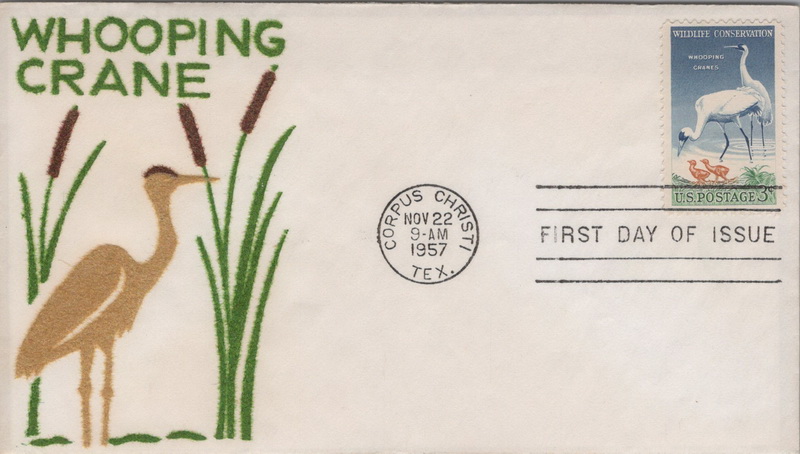 | | Flocked Cachets | | 893 | 1098 | 11/22/1957 | Wildlife, Whooping Cranes; Velvatone; Corpus Christ TX | $15.00 |