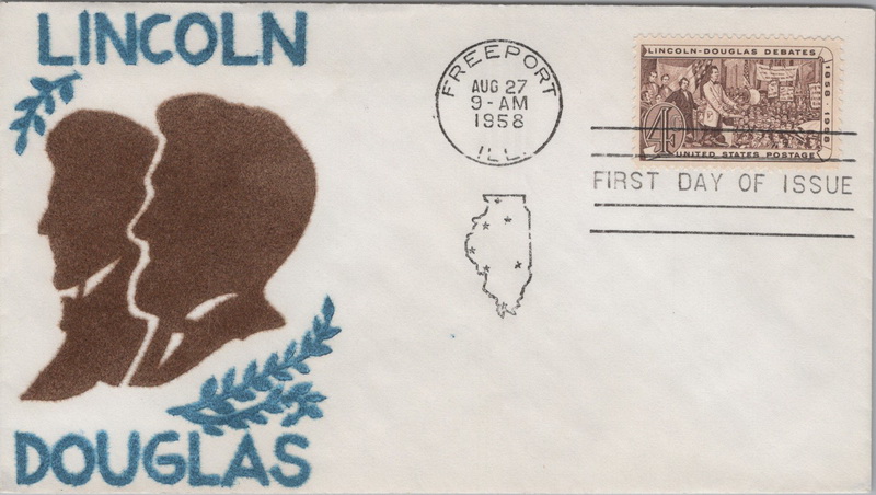 | | Flocked Cachets | | 900 | 1115 | 8/27/1958 | Abraham Lincoln, Lincoln-Douglas Debates; Velvatone; MNL | $15.00 |