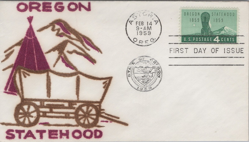 | | Flocked Cachets | | 903 | 1124 | 2/14/1959 | Oregon Statehood; Velvatone; M22 | $15.00 |