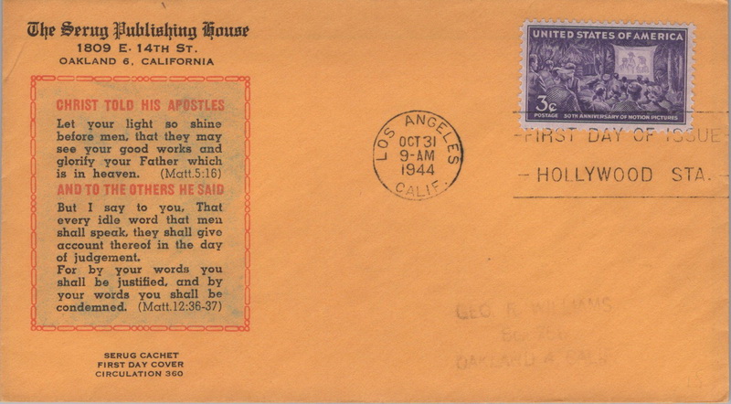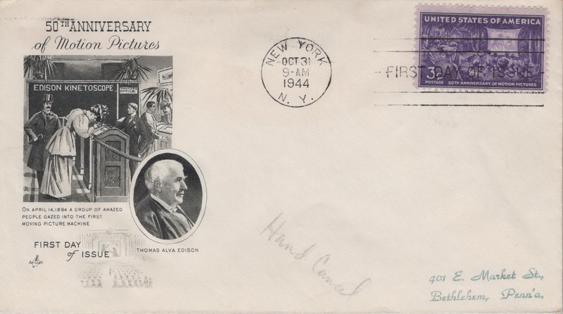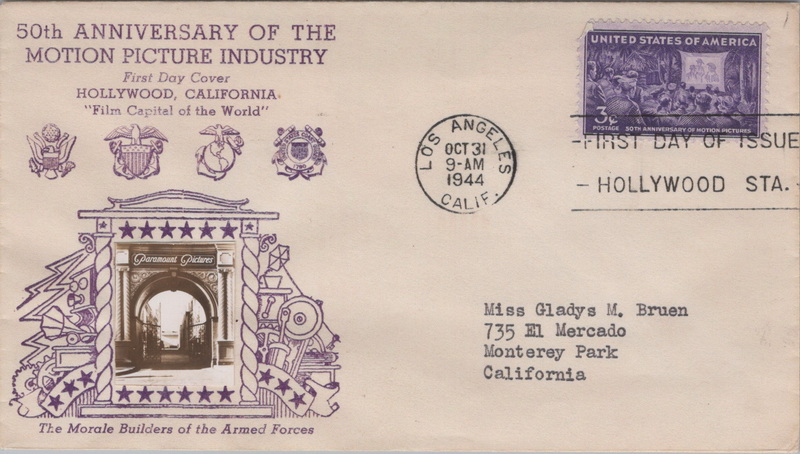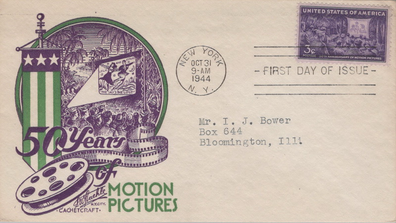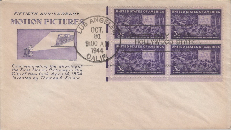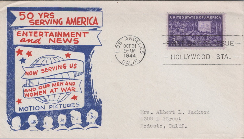 | | Hollywood & Celebrities | | 909 | 0926 | 10/31/1944 | Motion Pictures; (17) different cachets including Crosby, Smartcraft, FWD, Staehle, Grimsland, Intercity Stamp Club, and more | $100.00 |