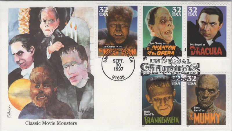 | | Hollywood & Celebrities | | 937 | 3172a | 9/30/1997 | Movie Monsters, strip of 5; Edken | $15.00 |