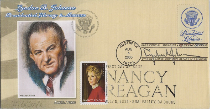 | | Presidential Inaugurations & Other Items | | 961 | 3930 | 8/4/2005 | Presidential Libraries; President Lyndon B. Johnson, Austin TX; Dual FDOI #5702 Nancy Reagan | $15.00 |