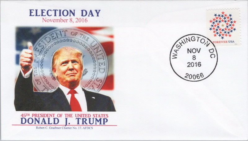 | | Presidential Inaugurations & Other Items | | 966 | Event | 11/8/2016 | 2016 Donald Trump Election Day, Set of 6; Graebner Chapter, CEC/FM-AFDCS, CEC | $40.00 |