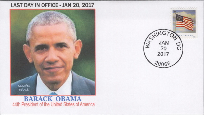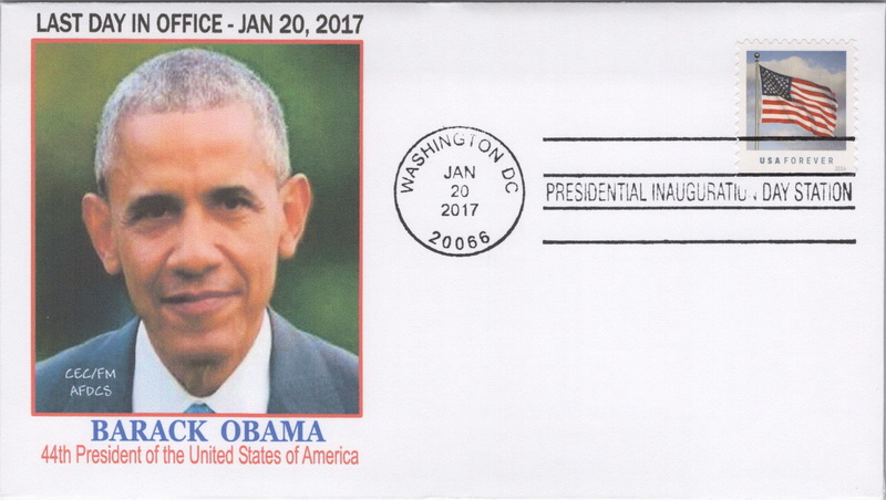 | | Presidential Inaugurations & Other Items | | 968 | Event | 1/20/2017 | CEC/FM/AFDCS; 2017 Barack Obama Last Day in Office, and Inauguration Day cancel; Set of 2 | $15.00 |