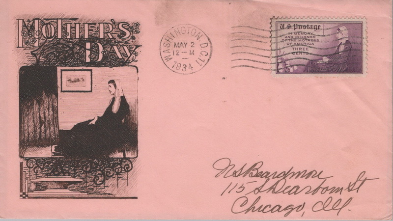 | | 1930s | | 981 | 0737 | 5/2/1934 | Mother's Day, Rotary Plate; Grimsland; P36a; black-brown on salmon envelope; MC7 12M IA | $25.00 |