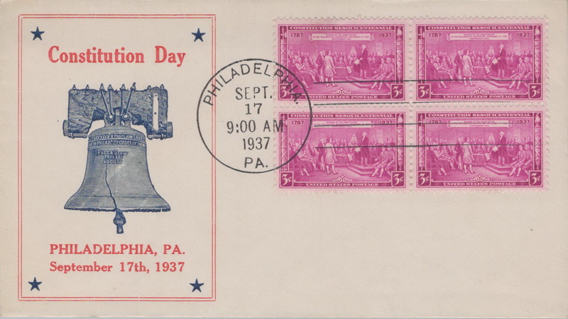 | | 1930s | | 991 | 0798 | 9/17/1937 | Constitution Sesquicentennial; Covered Wagon, The; P3; blue/red; B4 HC | $25.00 |
