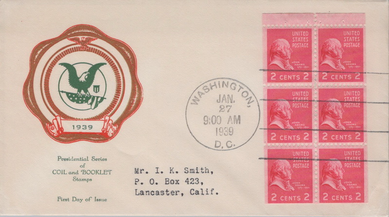 | | 1930s | | 997 | 0806b | 1/27/1939 | John Adams, Booklet Pane of 6; Rice; P57a; HC TA | $25.00 |