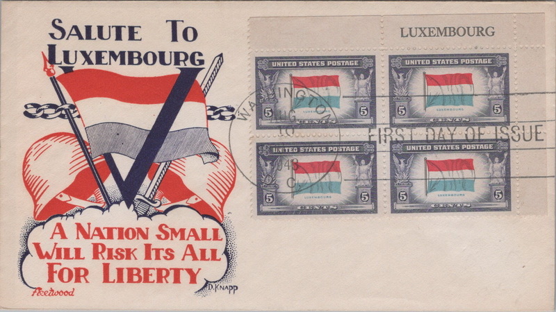 | | 1940s | | 1009 | 0912 | 8/10/1943 | Overrun Countries, Luxemburg; Fleetwood; M37; Art by Dorothy Knapp; Name Block of 4 | $20.00 |