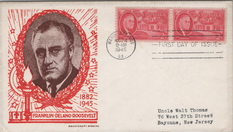 | | 1940s | | 1015 | 0931 | 8/24/1945 | Franklin D. Roosevelt, Warm Springs; Smartcraft; M7a; brown/red; red is THM; PR MC TA | $12.00 |