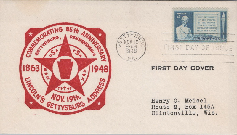 | | 1940s | | 1037 | 0978 | 11/19/1948 | Gettysburg Address - Lincoln; Meisel, Henry Otto; M41; MC TA | $12.00 |
