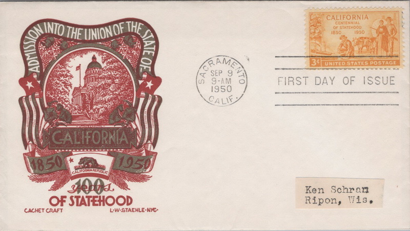 | | 1950s | | 1050 | 0996 | 7/4/1950 | Indiana Territory Sesquicentennial; Cachet Craft; M6; gold/purple; MC LA | $10.00 |