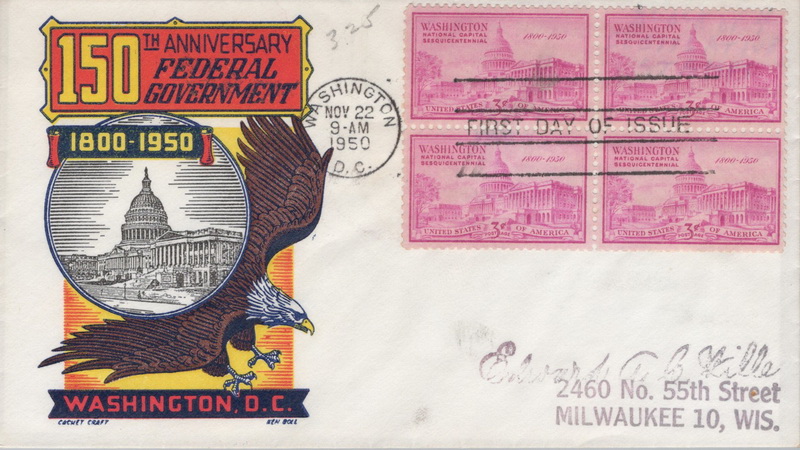 | | 1950s | | 1051 | 0992 | 11/22/1950 | National Capitol, Legislative Branch; Cachet Craft; M8; multicolored; Art by Ken Boll; B4 MC RSA | $12.00 |